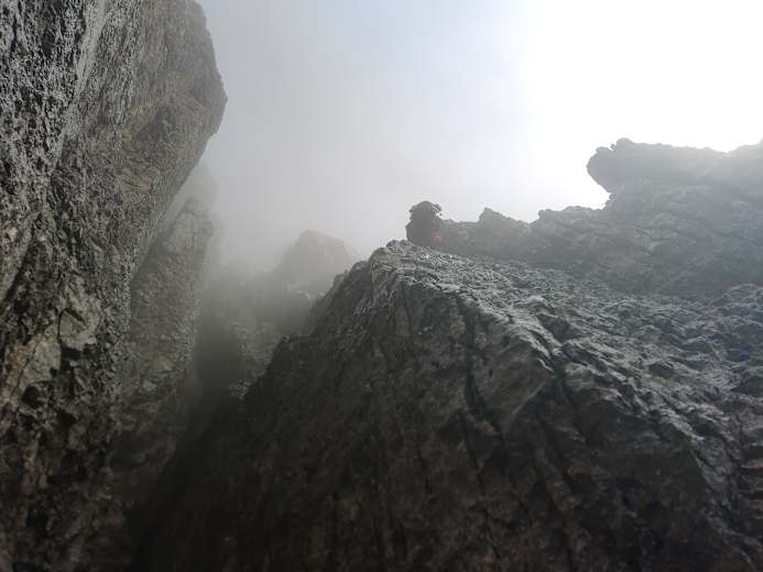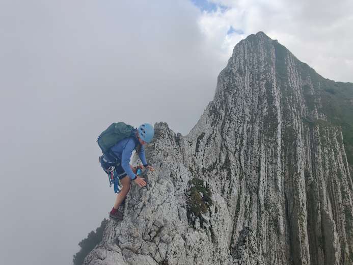 Ausgesetzte Gratkletterei am Beginn des Übergangs zum Hauptturm. Foto: Leonie Lindlar