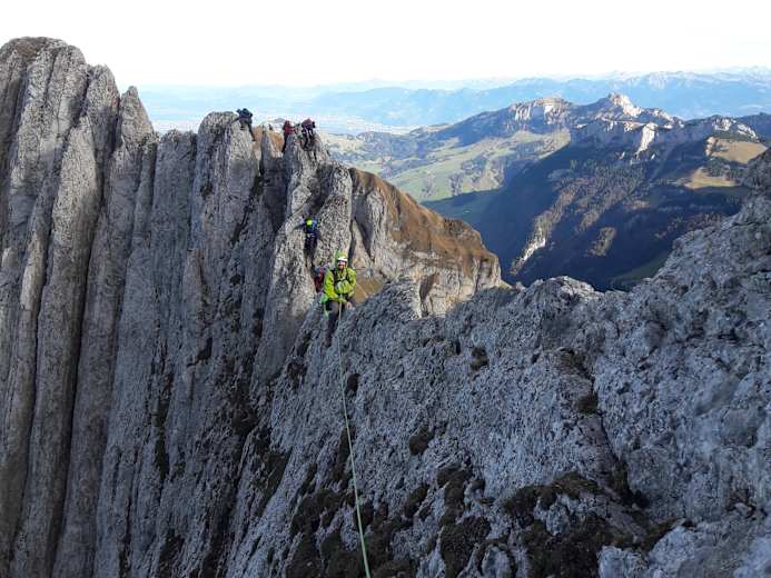 Die Tour ist eine luftige Gratwanderung mit alpinem Charakter. Sie erfordert Trittsicherheit, Schwindelfreiheit und Erfahrung im leichten Klettergelände. Belohnt wird man mit einer eindrucksvollen Aussicht: Im Norden der Bodensee, im Süden die Glarner und Bündner Alpen.