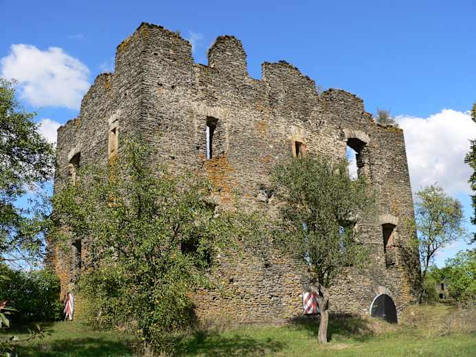 In Dill lohnt sich ein kleiner Rundgang zur Burgruine – von hier eröffnet sich ein eindrucksvoller Blick über das Tal und man spürt die historische Bedeutung dieses einst strategisch wichtigen Ortes.