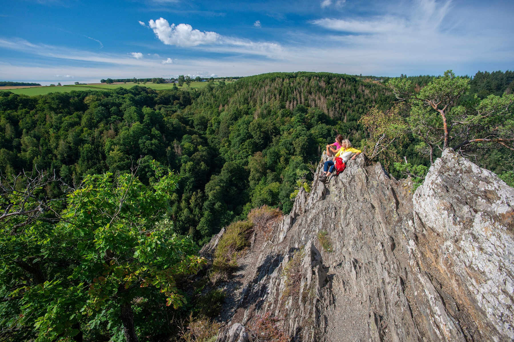 In der Altlayer Schweiz lohnt es sich, kurz innezuhalten – die bizarren Schieferformationen und schmalen Pfade vermitteln echte Wildnisatmosphäre und gehören zu den eindrucksvollsten Landschaftsszenen des gesamten Steigs.