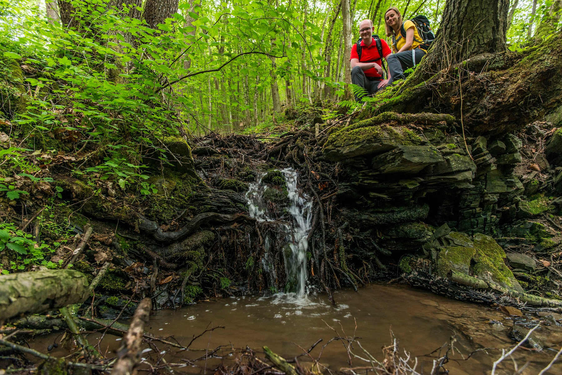 Das Abenteuer Baybachklamm führt uns durch herrliche, unberührte Natur, die von Wasser und Felsen geprägt ist. Eine eindrucksvolle Höhle im Schieferfels zeugt vom ehemaligen Bergbau und bald sind uralte, bemooste Mauern Vorboten der berühmten Burg Waldeck, die sich ca. 500 m oberhalb des Weges an der Hangkante erhebt und einen Abstecher lohnt.