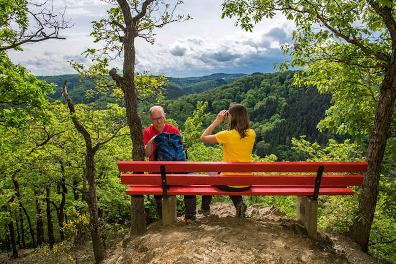 Die 22. Etappe des Saar-Hunsrück-Steig beginnt an der Schmausemühle und endet in Morshausen in Rheinland-Pfalz. Zunächst führt der Weg gemeinsam mit der Traumschleife Baybachklamm durch das Baybachtal mit hochaufragenden Felsen, schmalen Pfaden und teils seilgesicherten Passagen — Trittsicherheit und Schwindelfreiheit sind unabdingbar. Danach erwartet ein steiler Aufstieg über die Felsrippe „Eselsche“, gefolgt von offener Flur mit Ausblicken Richtung Mosel und Eifel. Diese Wanderung ist vom Anspruch her anspruchsvoll.