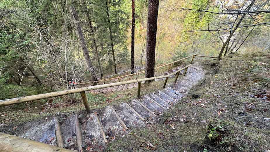 Der Weg von der Tannenhütte zurück Richtung Partenkirchen führt bergab über Stufen. Foto: Katharina Löffler