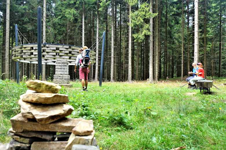 Von der Naturwerkstatt aus wandert man am Gipfelplateau des Jauerling. Zum Naturpark-Gasthaus und der Wachauterrasse geht man ein Stück bergab und über einen gemütlicheren Waldweg wieder retour zum Parkplatz des Naturpark-Gasthauses.