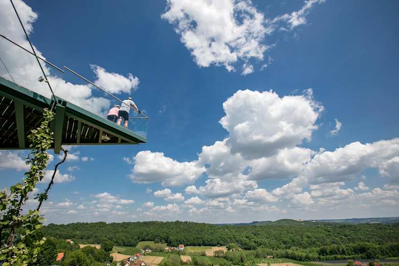 Vor oder nach der Wanderung sollte man sich Zeit für die Gesamtsteirische Vinothek in St. Anna am Aigen nehmen, die allein schon durch die auffallende Architektur sehenswert ist - ganz zu schweigen von der Fülle der steirischen Weine, die man hier verkosten und natürlich auch kaufen kann. Obenauf ist eine gläserne Aussichtsplattform mit herrlichem Blick in die fruchtbare Hügellandschaft bis Slowenien.