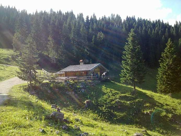Begleitet vom Glockengeläut der Kühe ist die Soila Alm bald erreicht. Hier kann bei schönem Wetter täglich ab mittags auf der Sonnenterrasse eingekehrt werden. Wer nach der Soila Alm noch ein Stück weiter Richtung Laber / Ettaler Manndl geht, gelangt an den Soila See, der im Sommer oft ausgetrocknet ist.