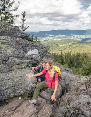 Der Schwarzeck Rundweg ist eine anspruchsvolle Tour, aber am Gipfel angekommen liegt einem der Lamer Winkel im Bayerischen Wald zu Füßen und man genießt eine traumhafte Aussicht.