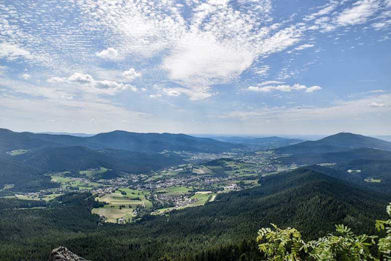 Wer an der Künischen Kapelle auf den La3 wechselt, erreicht den Kleinen Osser und die Osserwiese, von wo aus einem das Tal des Lamer Winkels malerisch zu Füßen liegt. Von dort führt der Weg zurück auf den La 1.