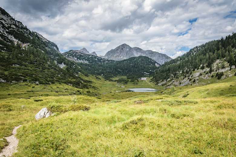 Auf dem Weg Nr. 416 über Halsköpfl, dem Schwarzensee und am wunderschönen Grünsee vorbei, die Himmelsleiter empor zur Hochebene mit Funtensee und Kärlingerhaus.
