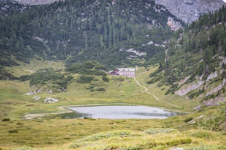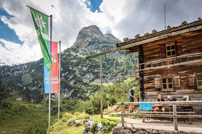 Die Wasseralm lädt zur Einkehr ein, bevor es weiter hinauf zum Kärlingerhaus geht.