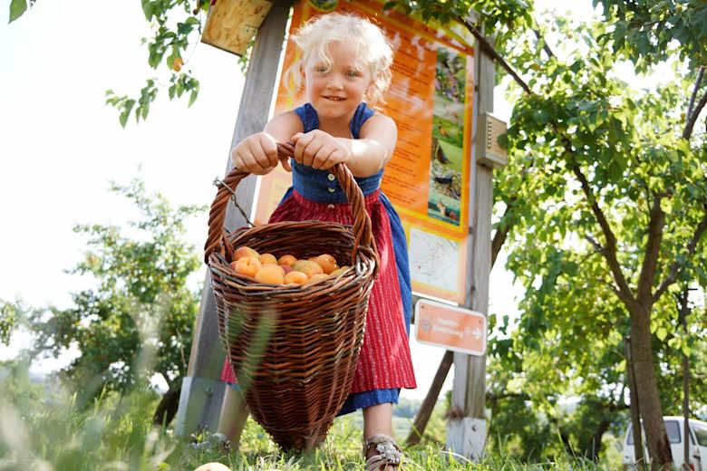 Der Marillen-Erlebnisweg ist mit geländetauglichen Kinderwägen befahrbar, jedoch nicht geeignet für Fahrräder!