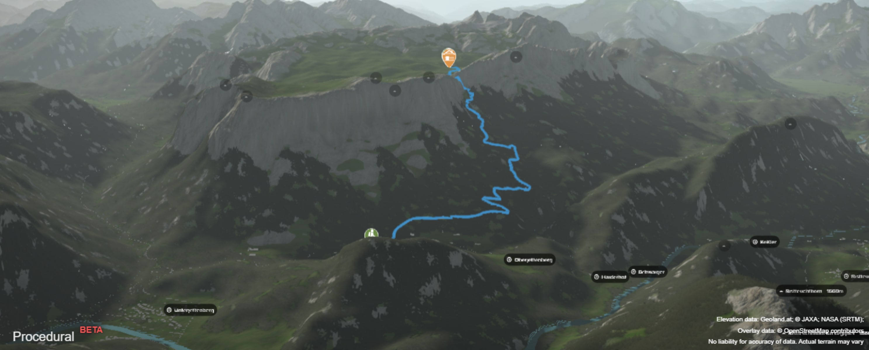 Vom Parkplatz nahe der Bundeswehr-Seilbahn führt die Asphaltstraße bis vor dem oberen Tor des Militärischen Bereichs, von wo ein Kiesweg nach rechts leitet. Nach rund einer Stunde passiert man eine kleine Lichtung mit Bänken. Der Pfad wird nun immer mehr zum Steig und führt uns in steilen Serpentinen direkt vor eine Felswand.