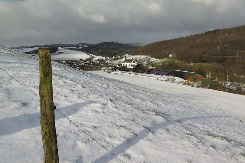 Nun geht es hinab ins Kelbketal und dann entlang des Welsberg in Richtung Schüren. Dort angekommen bietet sich an der neu erbauten Dorfkapelle eine ausgiebige Rast an.