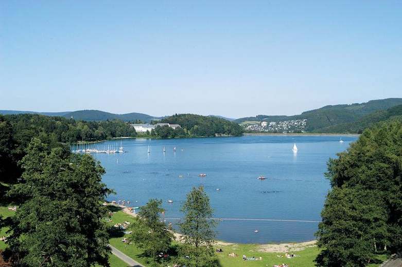 Von Schüren geht es über den Ahmberg wieder zurück in Richtung Hennesee. Unterwegs genießen wir interessante Ausblicke auf den See und ins obere Sauerland. Schon bald geht es hinab zum See und wir erreichen wieder unseren Ausgangspunkt.
