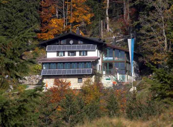 Im oberen Bereich lichtet sich der Wald und man kommt zur Bergwachthütte. Kurz danach zweigt man rechts zum Brünnsteinhaus ab und wandert die letzten Meter aufwärts zur Hütte.