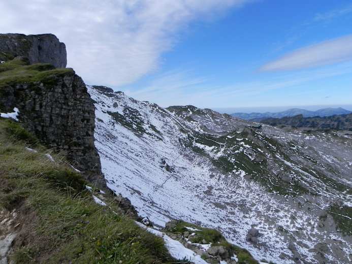 Man erreicht den grasigen Gipfelrücken und steigt ohne Probleme hinauf auf den Gipfel des Hohen Ifen.