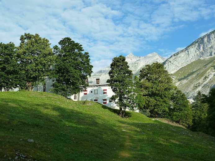 Vom Parkplatz am Eingang des Halltales hält man sich gleich nach dem Schranken links und folgt dem Wanderweg ins Halltal. Dieser verläuft fast parallel zu Asphaltstraße und ist wesentlich abwechslungsreicher als diese. Ab der so genannten 2. Ladhütte schwenkt der Weg leicht nach links und führt durch den Buchenwald aufwärts, bis man unvermittelt auf die Lichtung gelangt, auf der das alte Gasthaus mit der Kapelle steht.