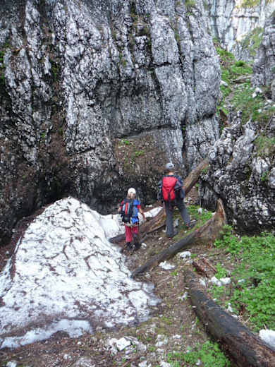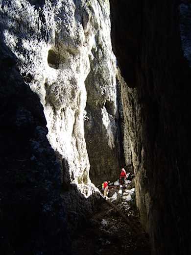 Dann geht es über verschlungene und stille Wege durch den Lärchenwald hinunter in die Notgasse, die 500 Meter lange Felsenschlucht im Dachsteinmassiv, mit ihren geheimnisvollen Ritzungen.