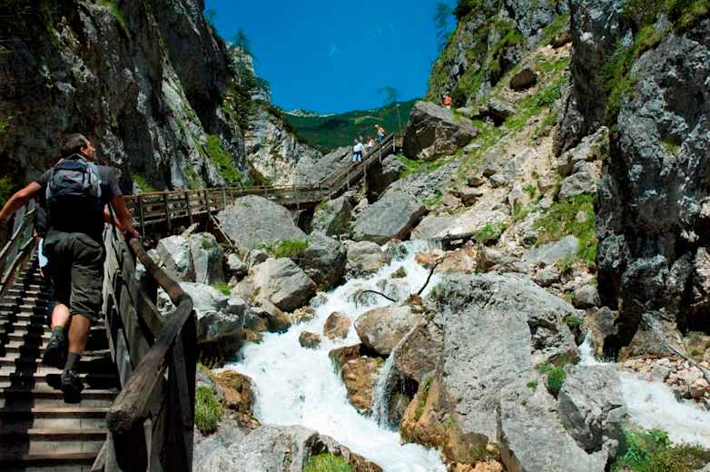Für Abwechslung sorgen aber auch die imposanten Wasserfälle, senkrechte Felswände, Blumen und die wildromantische Szenerie in der Klamm und im Kar und machen diese Tour zur empfehlenswerten Familienwanderung - die auch bei nicht perfektem Wetter zu machen ist.