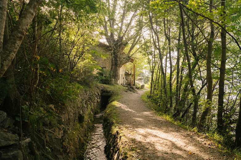 Nach einem ersten kurzen Anstieg führt die abwechslungsreiche Waalwegwanderung entlang des Schlanderser Sonnenbergs, vorbei an Weinbergen, Kastanienhainen und aufgelassenen Mühlen durch die Kortscher Leiten bis man die Runde beim Sportplatz oberhalb von Kortsch vollendet. Auf dem Weg eröffnen sich dazwischen immer wieder prächtige Ausblicke, beispielsweise auf die Laaser Spitze (3305m) mit der darunterliegenden Jennwand, dem höchstgelegenen Marmorbruch Europas.