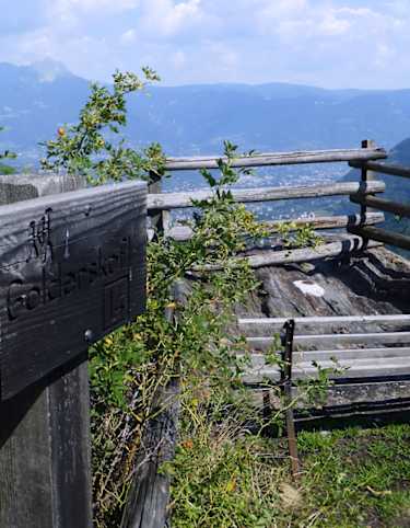 Auf dem Weg Nr. 9/11 geht es Richtung Agums, dann links abbiegen und den Suldenbach folgend kurz taleinwärts. Weiter auf dem Weg Nr. 9 bleiben, vorbei an der Herz-Jesu-Kapelle bis zum Pinethof vorbei an der Ruine Lichtenberg und bis oberhalb der Ortschaft Lichtenberg.