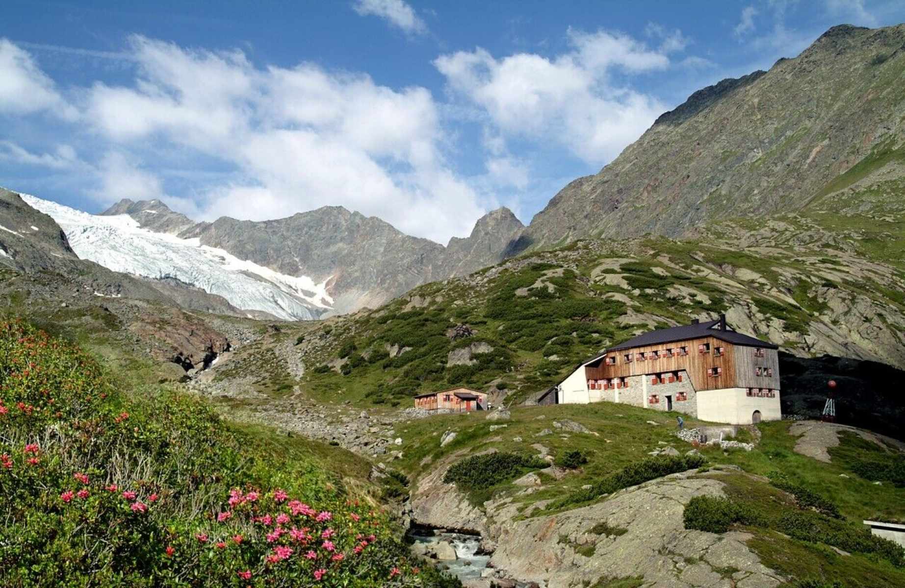 In gemütlichen Serpentinen geht es weiter zur Sulzenauhütte, die wie ein Adlerhorst mit großartigem Ausblick direkt über einer felsigen Abbruchkante auf einem schönen, ebenen Boden steht.