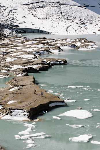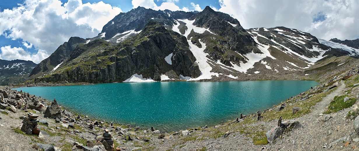 Vorbei an großen Moränenseen, türkisblauen Bergseen wie der „Blauen Lacke“ oder über glatte und bunte Gletscherschliffe gelangen Wanderer zu einem Gletschersee unterhalb des Peiljochs. Dort ist schließlich auch der Punkt erreicht, wo das WildeWasser das erste Mal an die Oberfläche trifft, somit seine Reise ins Tal beginnt und der Wanderer des WildeWasserWeges seine Tour beendet.