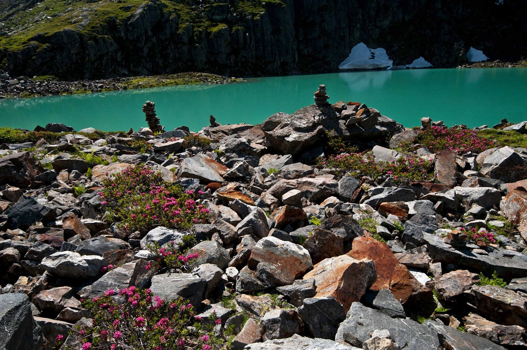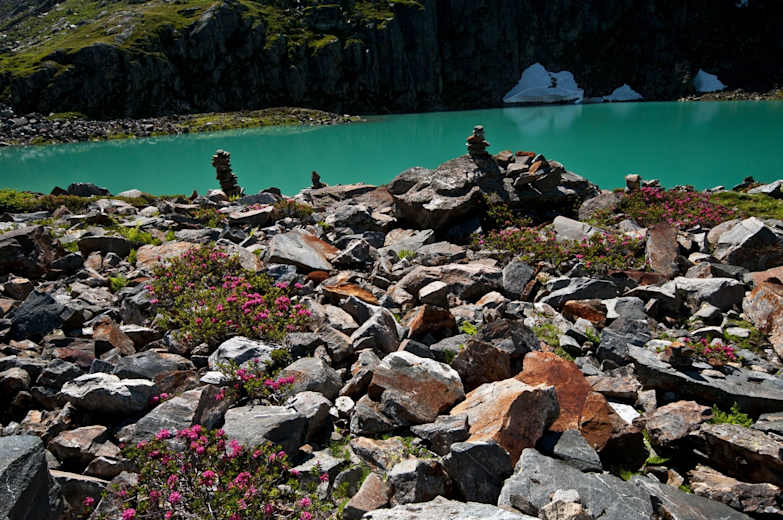 Almrosen am Ufer der Blauen Lacke Foto: Tourismusverband Stubai Tirol