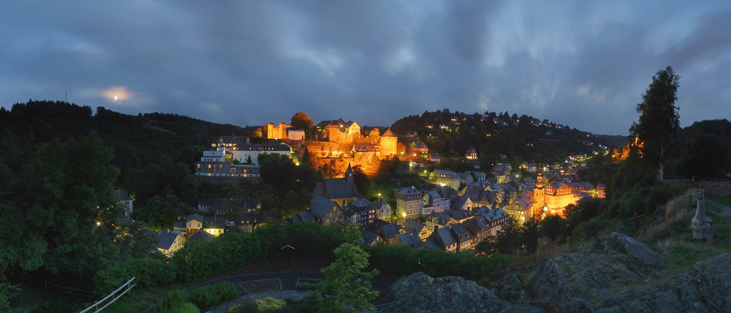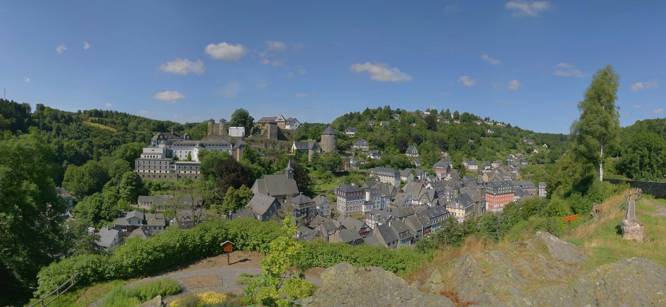 Herrliche Fernsicht wird auf den nächsten Kilometern geboten. Am Etappenziel Monschau angekommen, lohnt sich der Besuch der römischen Glashütte, des Museums „Rotes Haus“ und der historischen Senfmühle.
