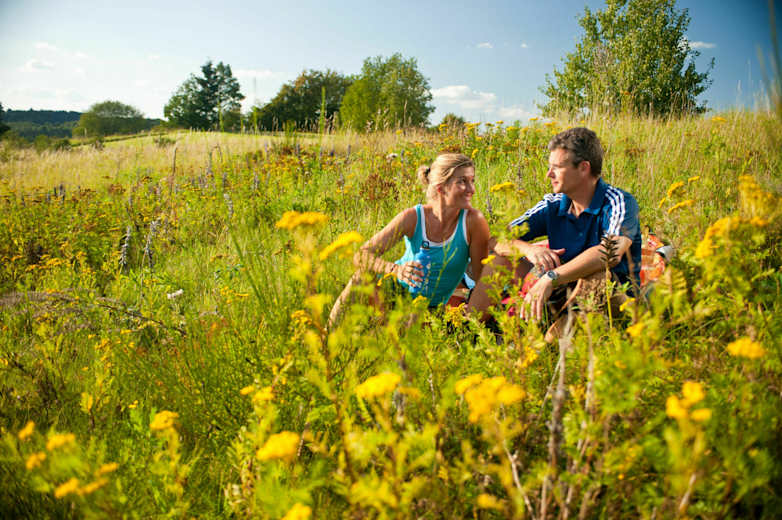Über den herausfordernden Anstieg hinauf zum Nerother Kopf, vorbei an der Mühlensteinhöhle, der Burgruine Freudenkoppe und der Neunkirchener Mühle geht es mitten durch die Vulkaneifel bis in die Kreisstadt Daun.
