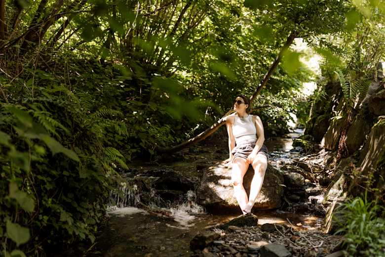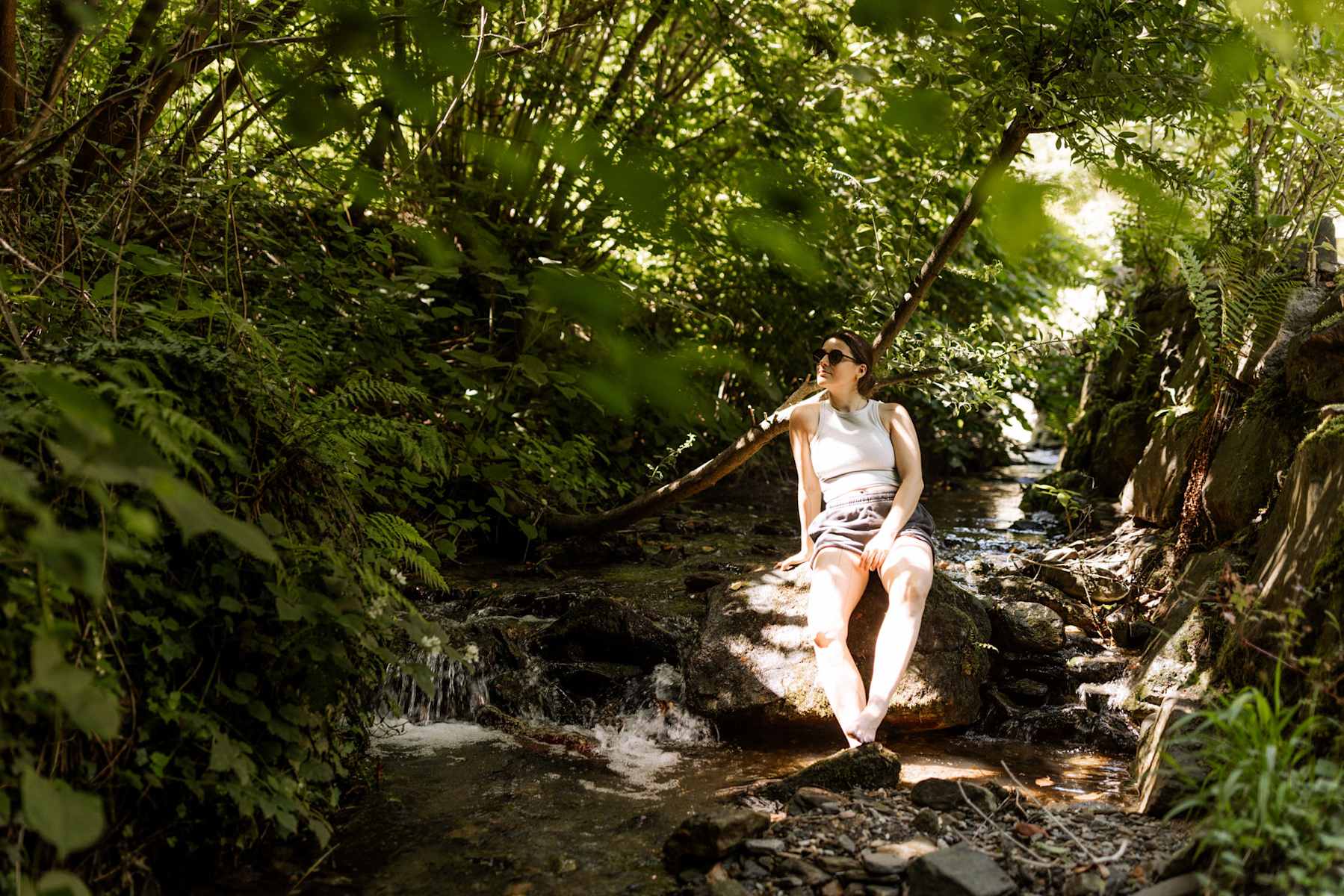 Beim 597 m hohen Kreuzberg (mit Marterl) erreichen wir das Ende des Kupfertals und wenden uns nach links und stoßen auf den Jakobsweg. Eine Forststraße führt uns zum Rührsdorfer See mit Rastplatz, den wir je nach Größe links oder rechts umgehen.