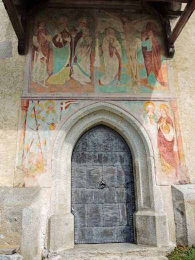 Die gotische Kirche in Viums stammt aus dem 13. Jahrhundert. Das farbenprächtige Kirchenportal wurde vor einigen Jahren renoviert und ist nicht nur für kulturhistorisch interessierte Wanderer interessant.
