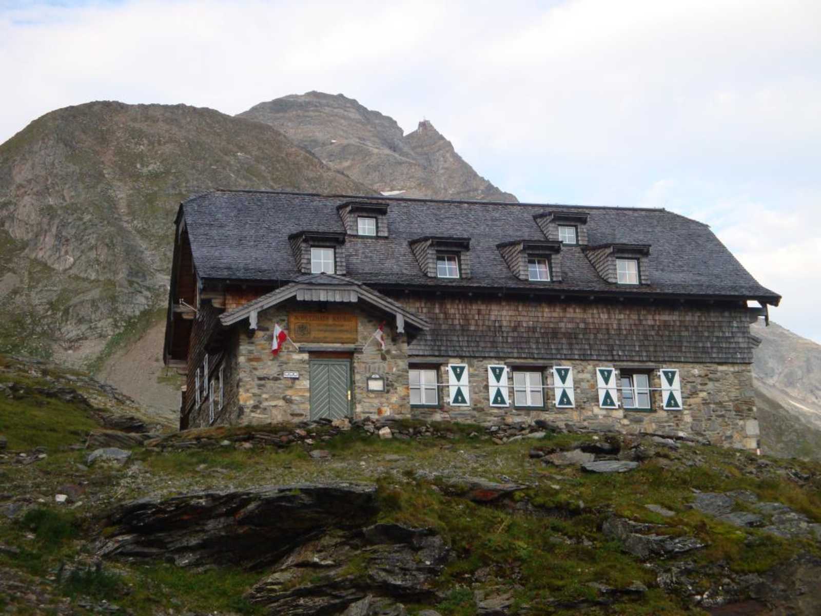 Gleich danach kommt eine Steilstufe, die Trittsicherheit erfordert. Zwischen den zwei Steilstufen ist die Wegführung flacher und geht über schöne Almflächen, die sogenannten Melcherböden. Von dort sind es noch ca. 45 Minuten bis zum Schutzhaus. Kurz unterhalb der Hütte wird es noch einmal steiler, auch hier ist Trittsicherheit sehr wichtig. Bei der letzten Abzweigung nach rechts in ein paar Minuten zum Etappenziel. Vom Schutzhaus Neubau (2.176 m) aus kann der empfehlenswerte Tauerngoldrundwanderweg / Gletscherlehrpfad (Erlebnisweg der Naturfreunde) besucht werden, mittlere Schwierigkeit.