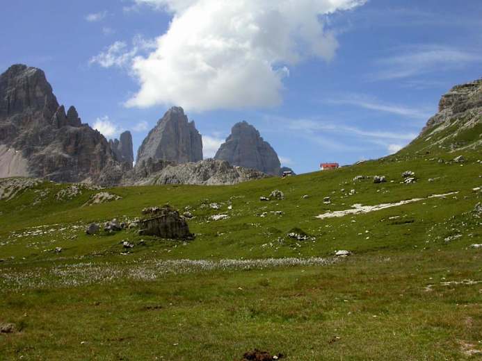 Es gibt die Möglichkeit bis zur Auronzohütte mit Auto oder Bus hinaufzufahren, die Drei Zinnen zu umrunden und wieder retour zur Auronzohütte zu gehen. Die Tour hätte dann folgende Stationen und Übernachtungsmöglichkeiten: Auronzohütte - Drei-Zinnen-Hütte - Büllelejochhütte - Lavaredohütte.