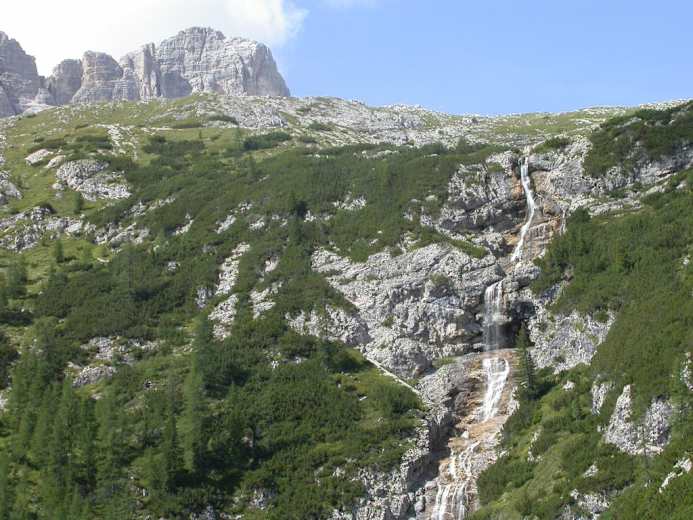 Immer parallel zur tief eingeschnittenen Schlucht des Altensteiner Bachs geht es stetig abwärts, ober uns die imposante Nordwand des Einserkofels. Das weiter oben vorherrschende Latschengebüsch geht über in Nadelwälder. Bei der Kreuzung mit dem Weg Nr. 103, der zur Zsigmondyhütte führt, hält man sich links. Schon bald taucht die Talschlusshütte (1.548 m) (eventuell noch einmal übernachten) auf. Der Rückweg zum Parkplatz (1.454 m) ist bekannt.