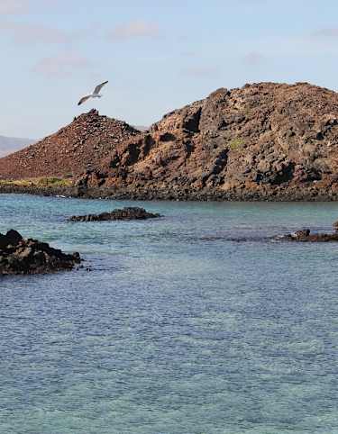 Es geht jetzt leicht ansteigend über ein erkaltetes Lavafeld hinauf zu einer kleinen Felsgruppe. Diese umschreitet man links, um auf die Rückseite zu gelangen. Von der kleinen Felsgruppe hat man einen schönen Blick hinüber zum La Catedral.