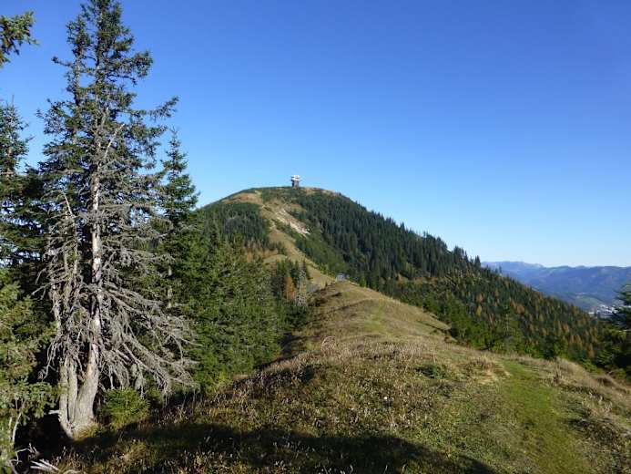 Der erste Abschnitt dieser Etappe führt direkt von der Brachalm (1.468 m) am Weg Nr. 5 zuerst etwas steinig, aber nicht schwierig abwärts und dann auf einem grasigen Rücken im steten Auf und Ab weiter - immer in Richtung der Gemeindealpe. Im letzten Drittel geht es dann über verschiedene Kehren (mit lustigen Namen) aufwärts. Von der „Gott sei Dank“-Kehre ist es nicht mehr weit bis zum flachen Gipfelplateau der Gemeindealpe mit dem Terzer Haus (1626 m). Seit kurzem steht hier das neu gebaute Schutzhaus - sehr schöne Übernachtungsmöglichkeit.