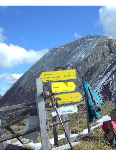 Weiter geht es in ein kleines Hochtal bis zur Riedingscharte (2.274 m). Hier besteht die Möglichkeit auf das Weißeck (2.711 m) zu wandern, mittelschwer, 1 - 1 1/2 Stunden, 440 Höhenmeter. Der Weg ist gut markiert, führt aber auf schmalen Wegen aufwärts. Trittsicherheit ist unumgänglich!