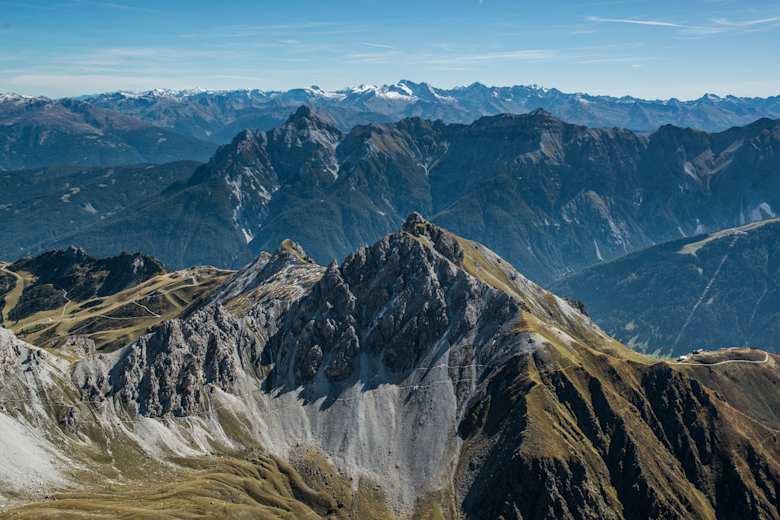 Bei schönem Wetter und guter Fernsicht gibt der Hohe Burgstall (2.611 m) von seinem Gipfel aus ein einzigartiges 360-Grad-Panorama vom Karwendel über die Zillertaler Alpen und den Bergen des Gschnitztales bis zu den Gletschern rund ums Zuckerhütl und der Franz-Senn-Hütte frei.