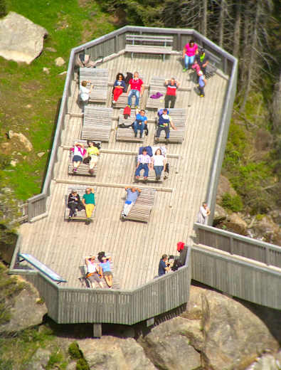 Die Wanderung auf den neu gestalteten, barrierefreien WildeWasserWegen ist für Familien, Senioren und für behinderte Menschen gleichermaßen ein Hochgenuss. Von der Ausgangsstation führt der Weg zuerst zum Ruetz-Katarakt mit seinen Beobachtungs-Plattformen. Entlang des wunderschönen Ruetz-Flusses geht es weiter, vorbei an zahlreichen kleinen Quellen zur Tschangelair-Alm, einer der letzten Ziegenalmen in Tirol. Von Tschangelair geht es linksseitig der Fließrichtung der Ruetz zur Gesundheitsplattform beim Grawa-Wasserfall. Mit etwas Glück kann man auf dieser Strecke die Ziegen beobachten, die den Sommer auf der Tschangelair-Alm verbringen. Hier empfiehlt es sich, das einzigartige Angebot anzunehmen und rund 1 Stunde auf den sanft geformten Liegestühlen zu verbringen. Bereits in dieser kurzen Zeit verbessern die Wasser-Aerosole die Durchgängigkeit der oberen Atemwege. Für alle, die einerseits sportlich und andererseits gut ausgerüstet sind, ist ein Aufstieg zu den Aussichtsplattformen hoch oben am Grawa-Wasserfall empfehlenswert. Gutes Schuhwerk, Trittsicherheit und eine Grundkondition sind Voraussetzungen für den Aufstieg. Die Wegzeit zur mittleren Aussichtsplattform beträgt 1/4 Stunde, zu oberen Plattform rund 1/2 Stunde. Der Weg ist in einem ausgezeichneten Zustand. Empfehlenswert ist es, die Aufstiegsroute auch als Rückweg zu nehmen.