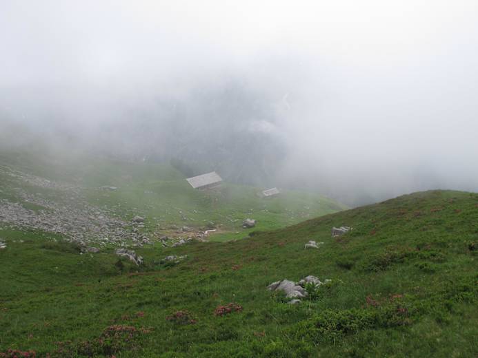 Man folgt dem Höhenweg über das Ischkarneier Fürggele und kommt zur Alpe Oberischkarnei, von der man die letzten Höhenmeter zum Schadonapass auf.