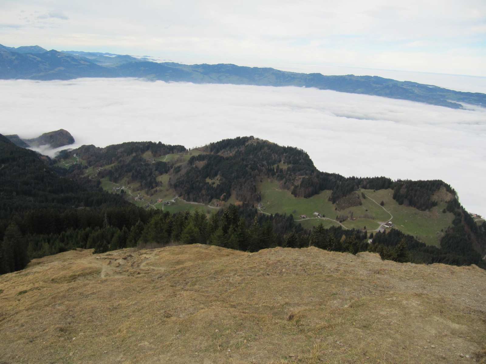 Alternativ kann man vom Fluher Eck über die Schönermann- und Hinterbergalpe auf dem Springhaldenweg nach Ebnit wandern (ca. 1 Stunde Zeitverlust).