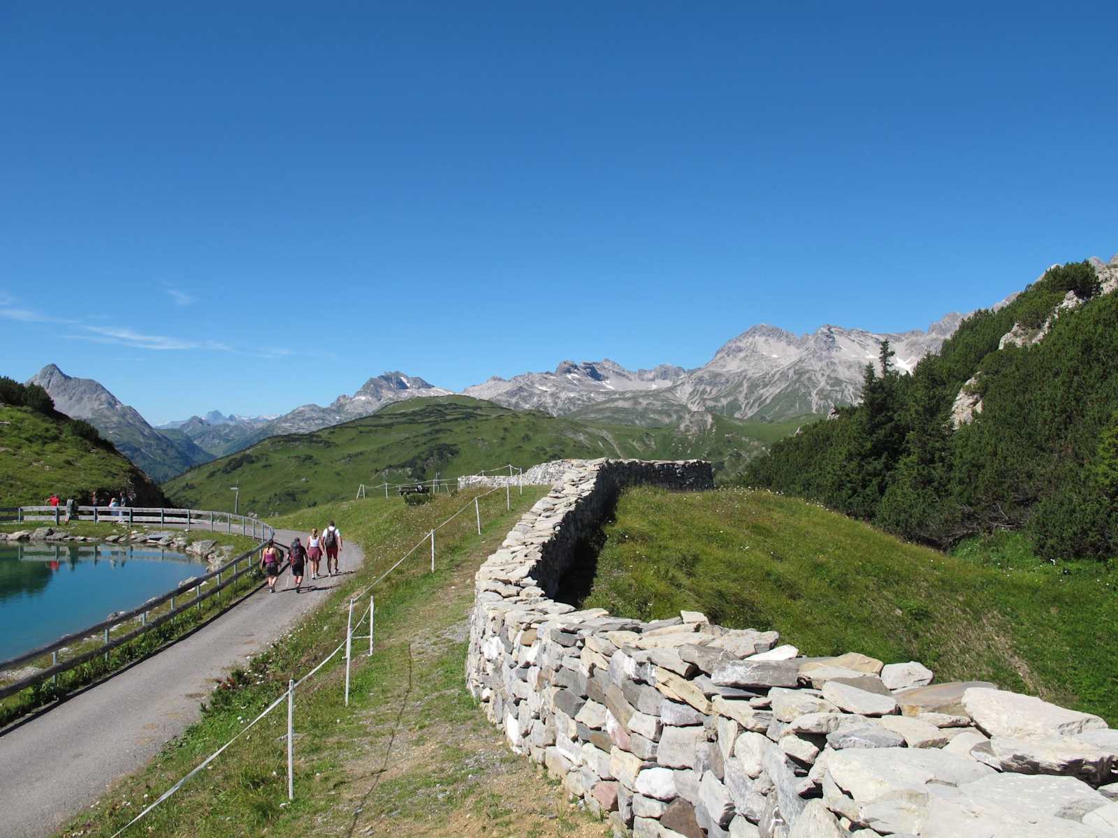 Man wandert von Lech über die Rudalpe nach Oberlech und über einen Wanderweg zum Kriegersattel. Man steigt zum Weiler Zug ab und geht am Lech entlang zum Formarinsee, an dessen Ende sich die Freiburgerhütte befindet.