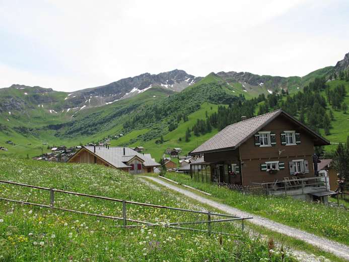 Alternativ kann man auch den Weg von Steg nehmen: Man geht nach links über Hintervalorsch (1.456 m) und das Sassförkle (1.786 m) nach Malbun (ca. 4 Stunden).