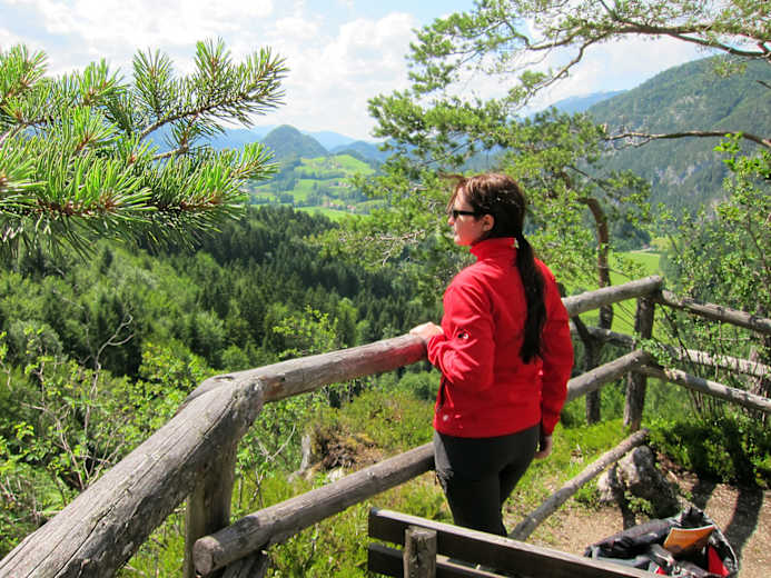 Man überquert also den Salzabach und folgt dem Weg links hinauf. Nach einem Anstieg von ca. 25 Minuten erreicht man diesen wunderbaren Aussichtsfelsen mit herrlichem Blick ins Tote Gebirge.