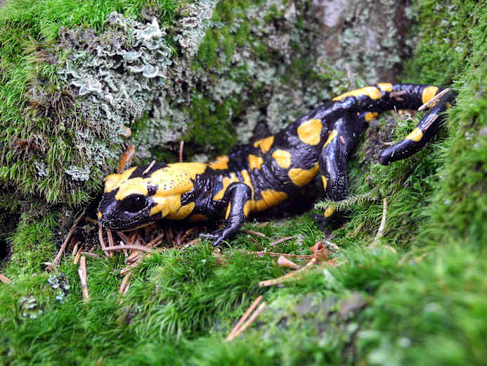 Selbst bei regnerischem Wetter ist der "Natur-Spuren"-Weg einen Ausflug wert, denn dann wagen sich auch die sonst nachtaktiven Feuersalamander aus ihren Verstecken. Nicht umsonst ist der Feuersalamander das Symbol des Erlebnisweges.