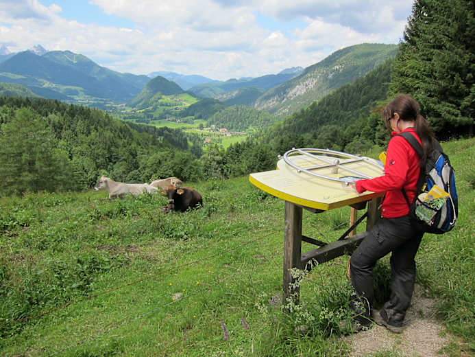 Am Rückweg biegt man bei der ersten Weggabelung rechts ab und folgt dem Weg Nr. 8 Richtung Wurbauer Kogel. Bei der nächsten Weggabelung folgt man dem Wegverlauf ca. 15 Minuten Richtung Windischgarsten und steigt dann, dem Weg Nr. 8 folgend, rechts zurück ins Salzatal ab, das man nach ca. 20 Minuten erreicht. Jetzt sind es noch 10 Minuten zurück zur Villa Sonnwend.