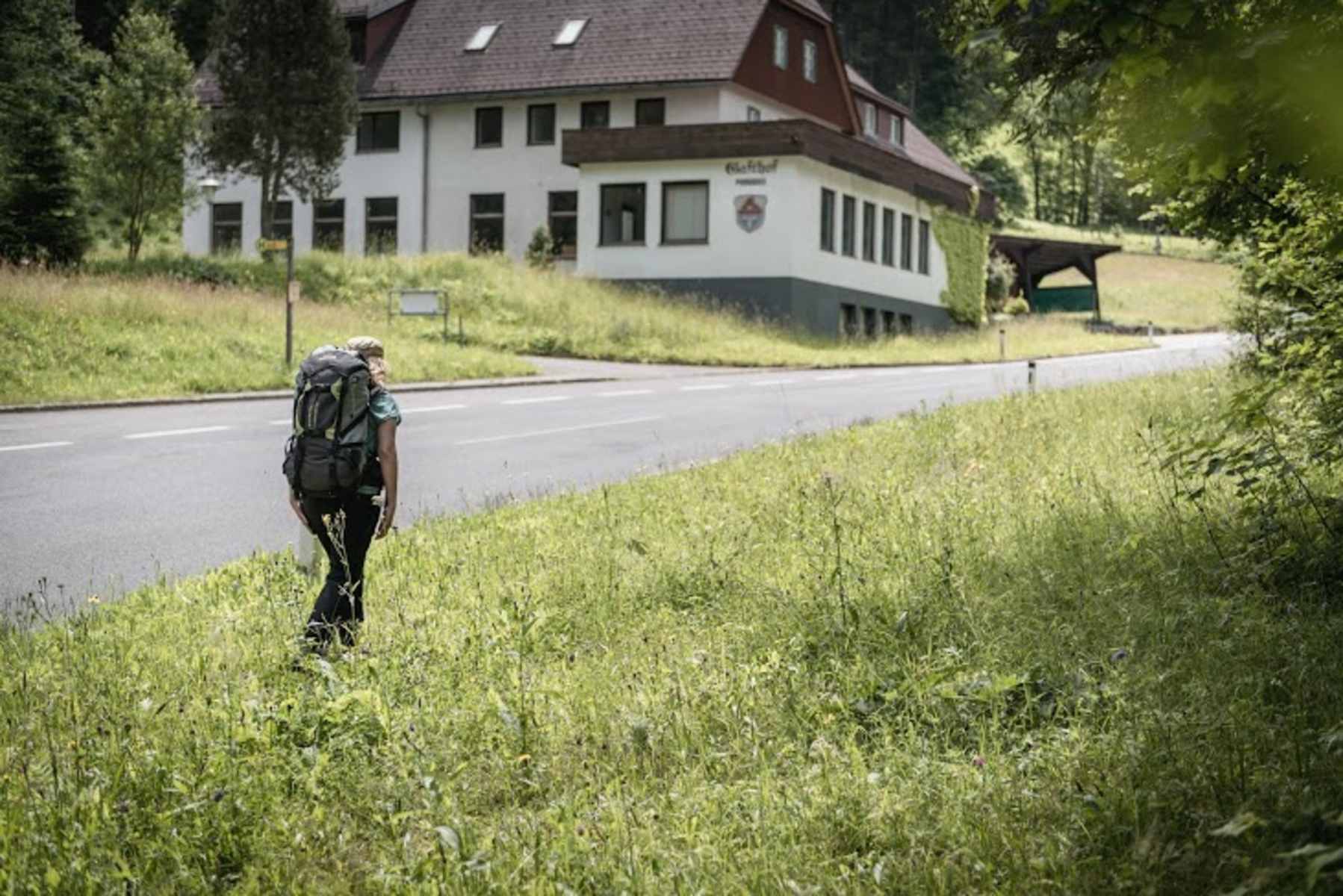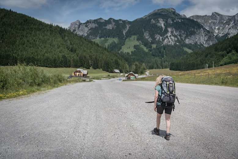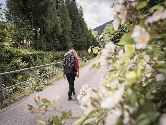 Gegenüber des Stiftes Admont im Ortszentrum von Admont biegt Du (nach Süden schauend) diagonal rechts in den Marienparkweg ein. Du überquerst die Aignerstraße und wanderst weiter die die Obere Bachgasse und weiter die Bachpromenade entlang bis zur Abzweigung zum Schloss Röthelstein. Danach gehst Du ein kleines Stück auf der Landesstraße L713 bis zum ehemaligen Gasthof Paradies und verlässt in einer Linkskurve die Straße – hier führt der Weg Nr. 653 geradeaus in den Veitlgraben.