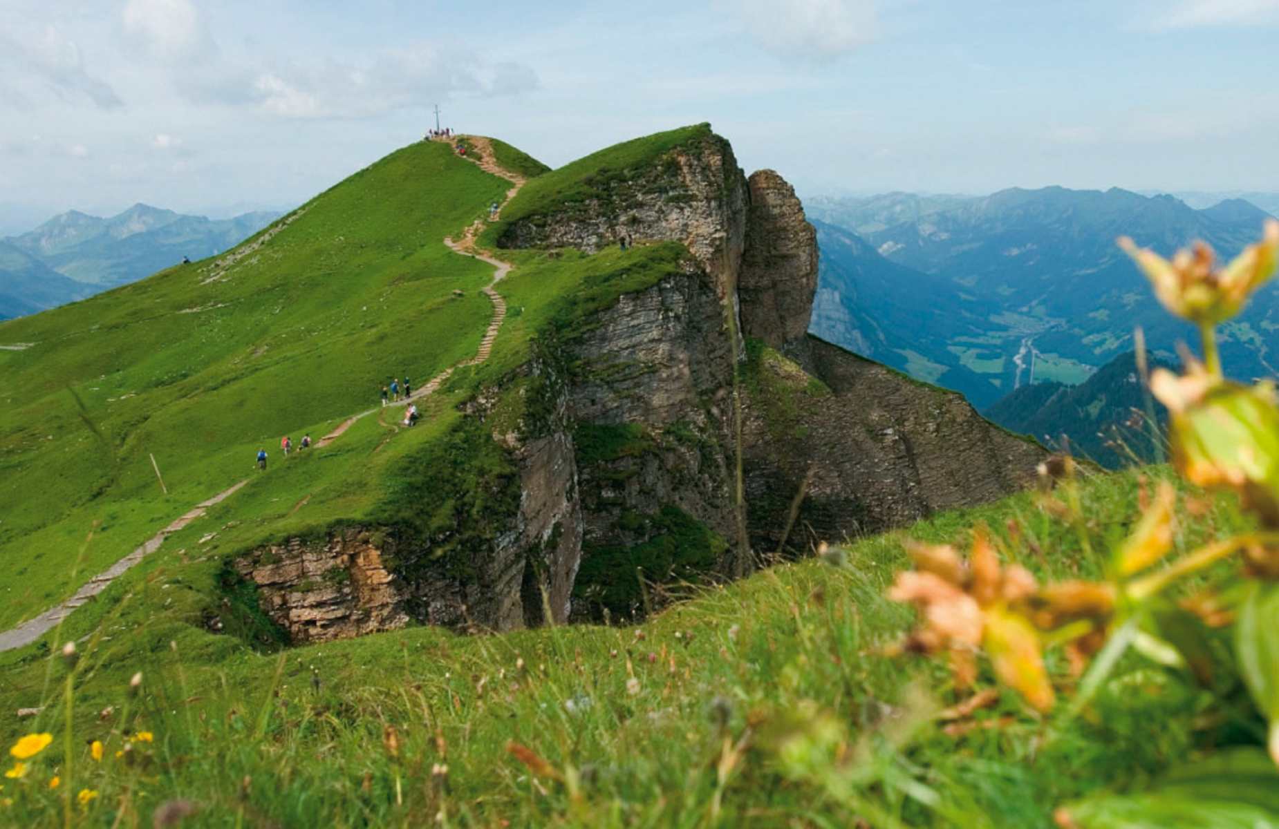 Die Vorarlberger Wanderung in der Region Bregenzerwald führt durch die weiten, grünen Alpmatten um den Diedamskopf. Vom Gipfel genießt man eine herrliche Aussicht zu den Allgäuer und Lechtaler Alpen, ins Rätikon, zu den Glarner Alpen und sogar bis zum Bodensee – über 100 Gipfel sollen von dort oben zu sehen sein. Bei schönem Wetter sieht man auch viele Gleitschirmflieger.