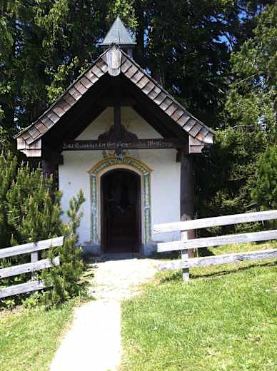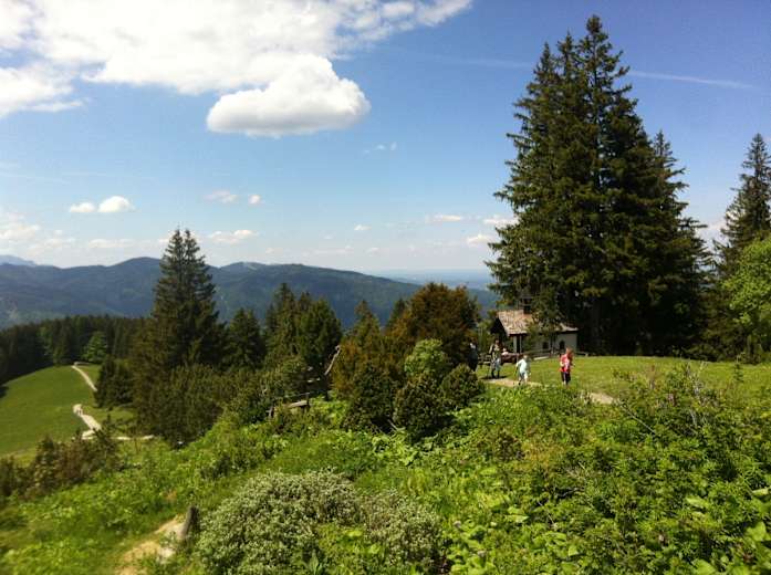 Statt Gipfelkreuz erwartet einem hier eine hübsche Kapelle und eine gemütliche Einkehrmöglichkeit im Berggasthof Neureuth in den Bayrischen Voralpen (1.264 m). Das Gasthaus lädt mit gutem Essen und einer atemberaubenden Aussicht mit Berg - und Seeblick zum Verweilen auf der Sonnenterrasse ein.